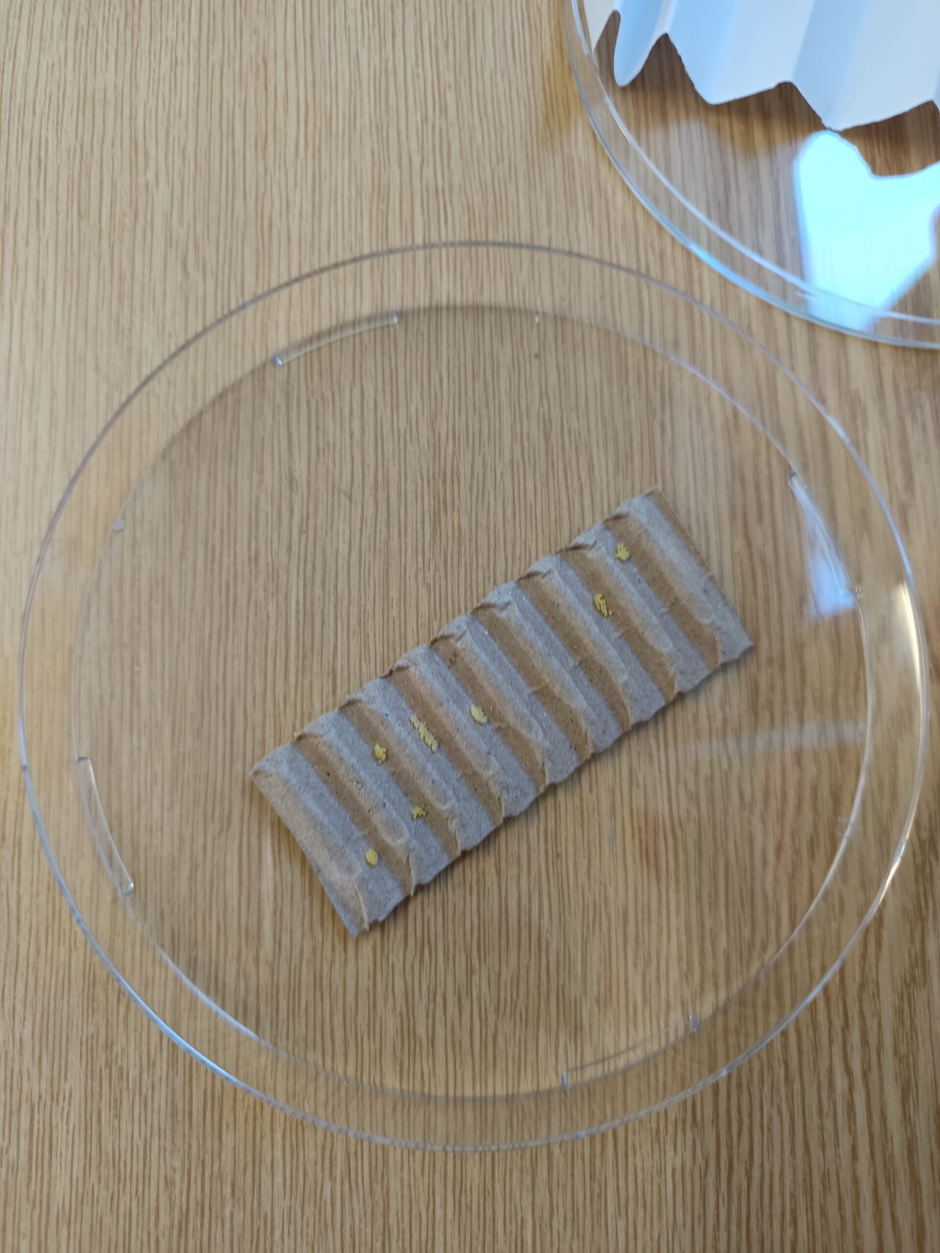 Ce que nous avons observé pour l’instant ce sont des petites boules jaunes posées sur un carton ondulé.